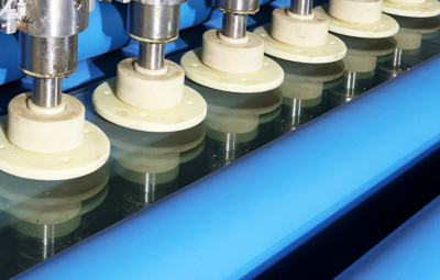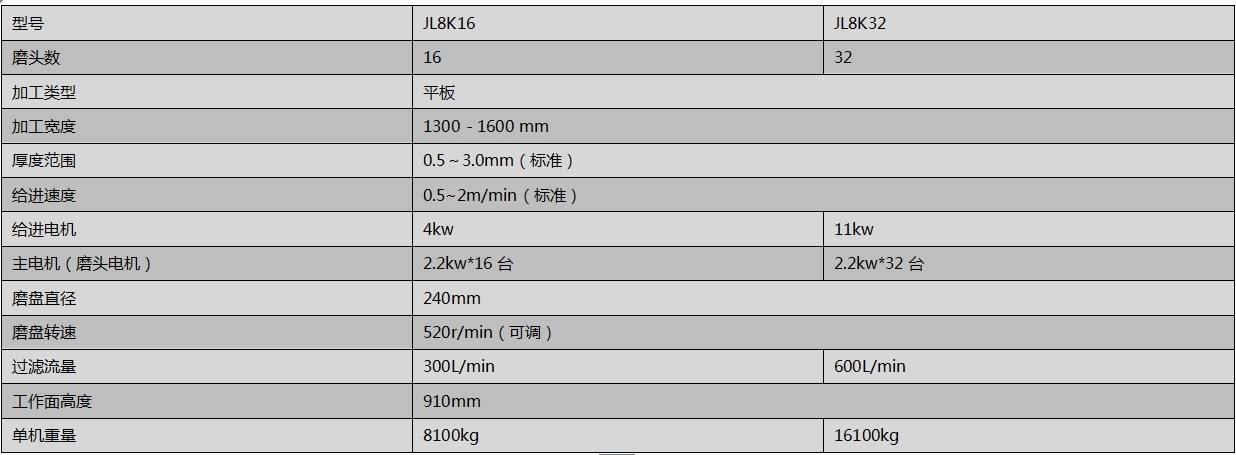 JL8K鏡面拋光機為單機16磨頭,客戶可根據(jù)產(chǎn)能的要求配置多臺單機,組成鏡面拋光生產(chǎn)線。過濾系統(tǒng)(選購)可以將磨料混合物從金屬廢屑中過濾出來,回收利用。清洗和烘干設備(選購)可為板材表面最終貼膜處理做好準備。