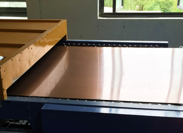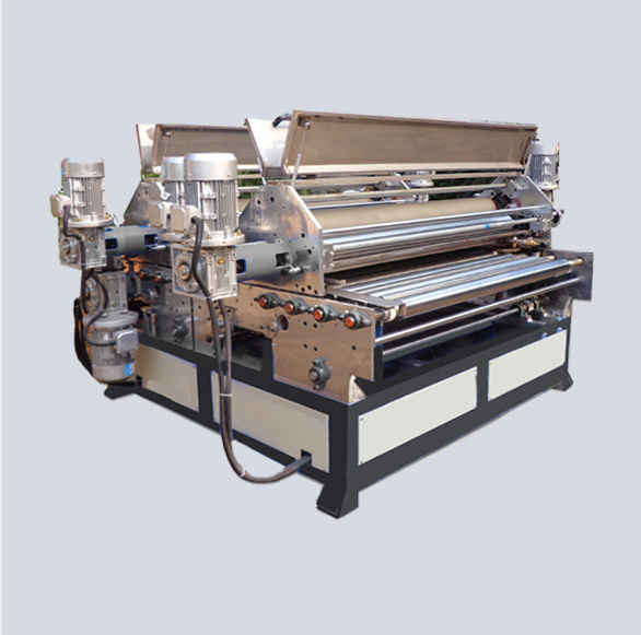 該工藝通過浸泡過油漆的膠輥滾式運(yùn)動涂在待處理面,均勻留下油漆層。前段清洗烘干一體機(jī)(選購)可以將待處理板材表面清洗干凈,為滾涂油漆做準(zhǔn)備。后段的烘干設(shè)備(選購)可為板材表面最終貼膜處理做好準(zhǔn)備。